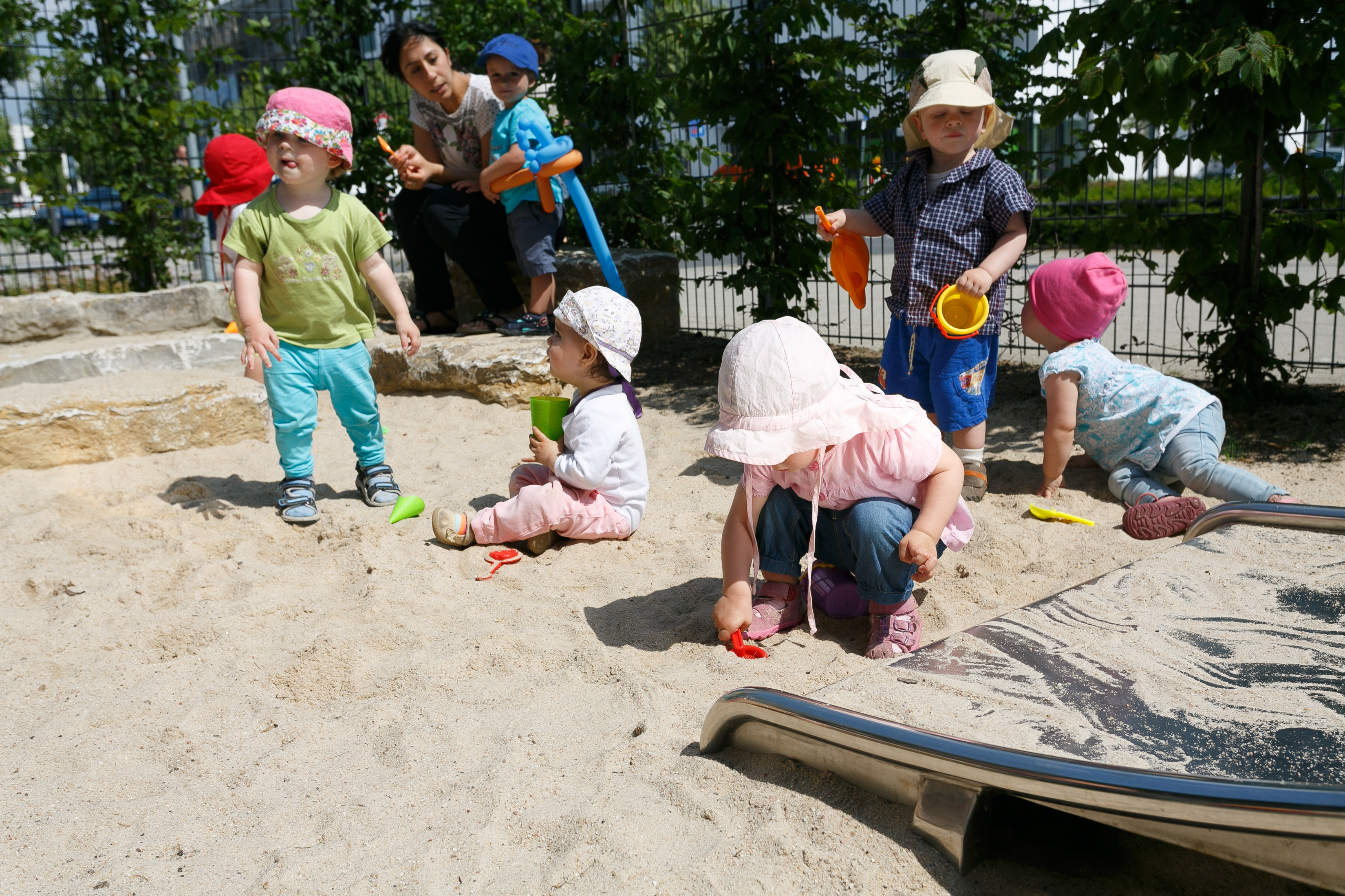 A small, nicely arranged outdoor area with sandpit and lawn provides the opportunity to run around and dig. Regular excursions in the surrounding area, for example to the Kätcheslachpark and to playgrounds, provide further stimulation.